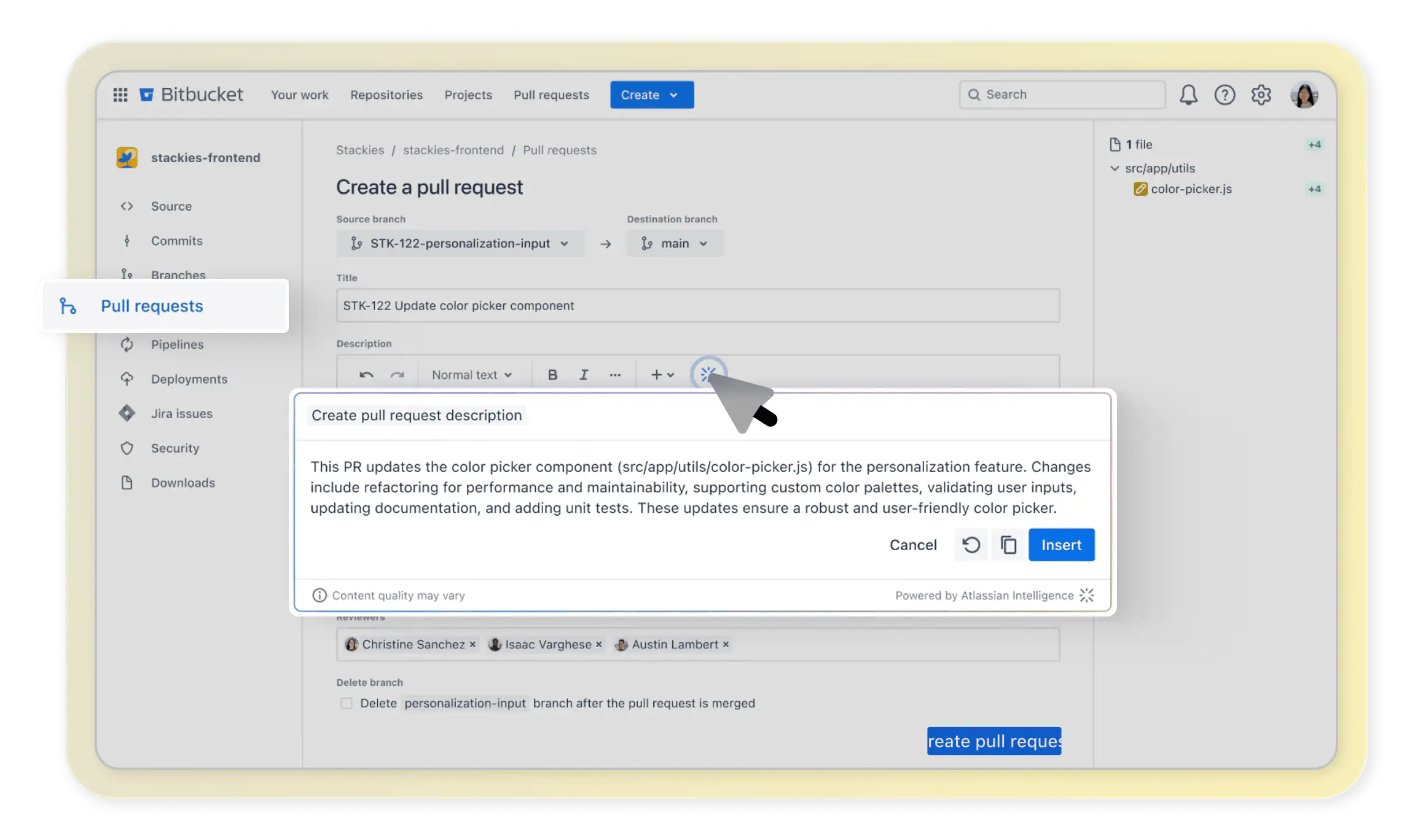Atlassian Intelligence brings real AI‑powered tools into Bitbucket, helping teams move faster and more efficiently across coding, reviews, and collaboration. Increase developer productivity and happiness with generative AI features built into Bitbucket Premium.