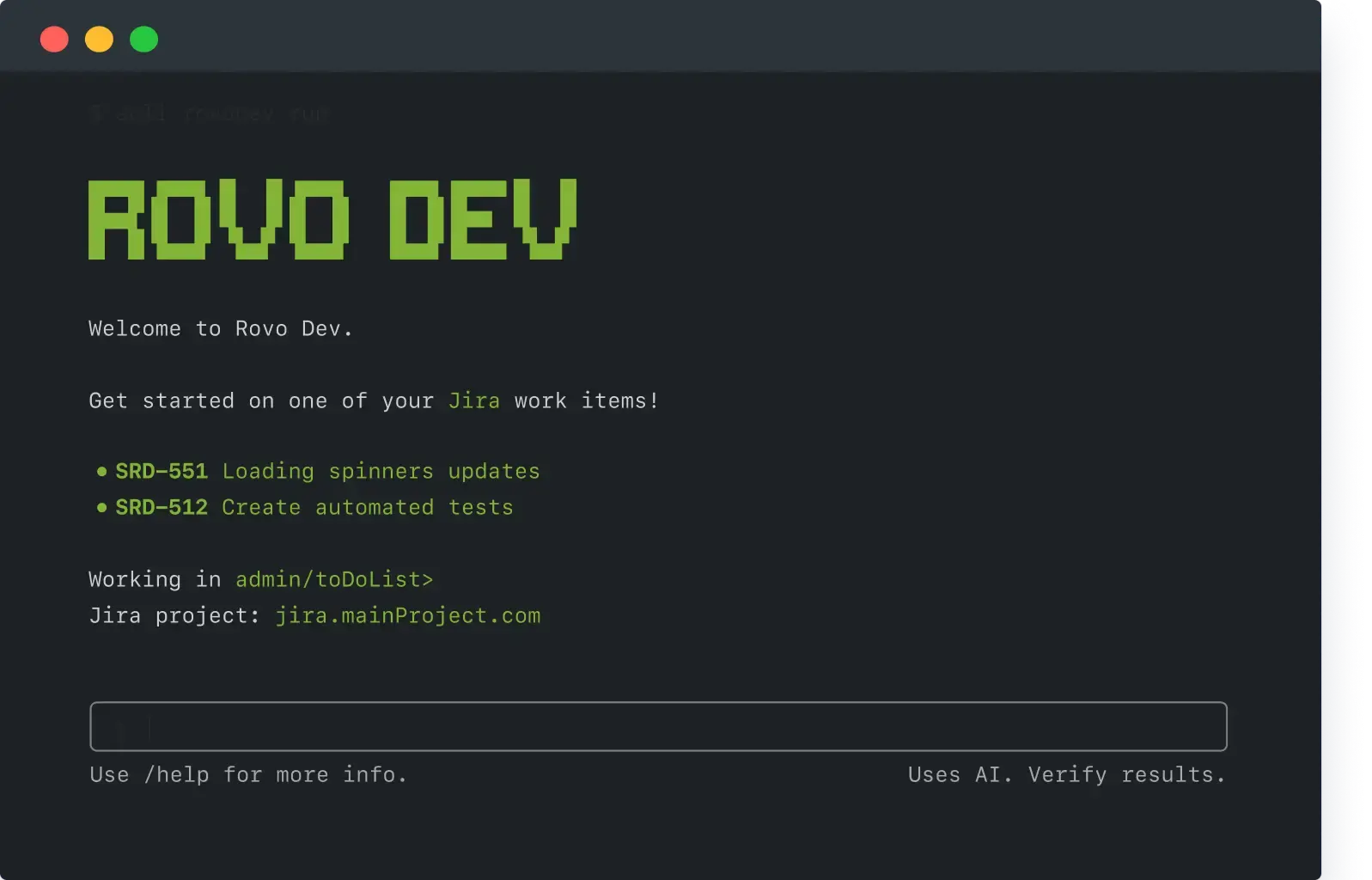 Rovo Dev optimiza cada paso del ciclo de vida de entrega de software, directamente desde su terminal, dentro de su IDE y en toda su cadena de herramientas.
